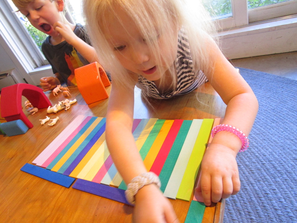 Amelia This blue part is water for my duck, and the green is grass for the horses. Wesley I’m making a balance thing.
