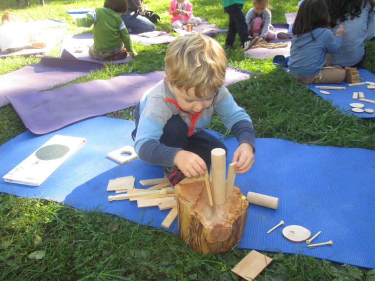 Sarah then explained her idea of how the sculpture was made. She imagined “a conductor moved all the branches around and formed the sculpture.” Providing the children with a myriad of wooden materials, she challenged them to create individual sculptures from their own imaginations.