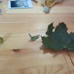 I brought a leave. Someone brought a picture (noticing a photo of a bunny in his bag.) I brought seashells. KAYA